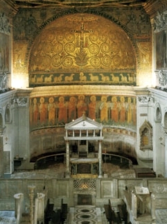 Si queremos visitar la basílica original tendremos que descender a los sótanos de la actual iglesia, que fue construida sobre la primera en el siglo XII. Su rica decoración interior es asombrosa, con hermosas pinturas murales, elaborados mosaicos y delicadas esculturas. Este lugar floreció en la época altomedieval gracias al mecenazgo de los emperadores bizantinos.